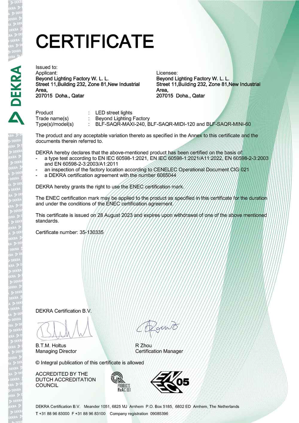 • 5 years warranty.